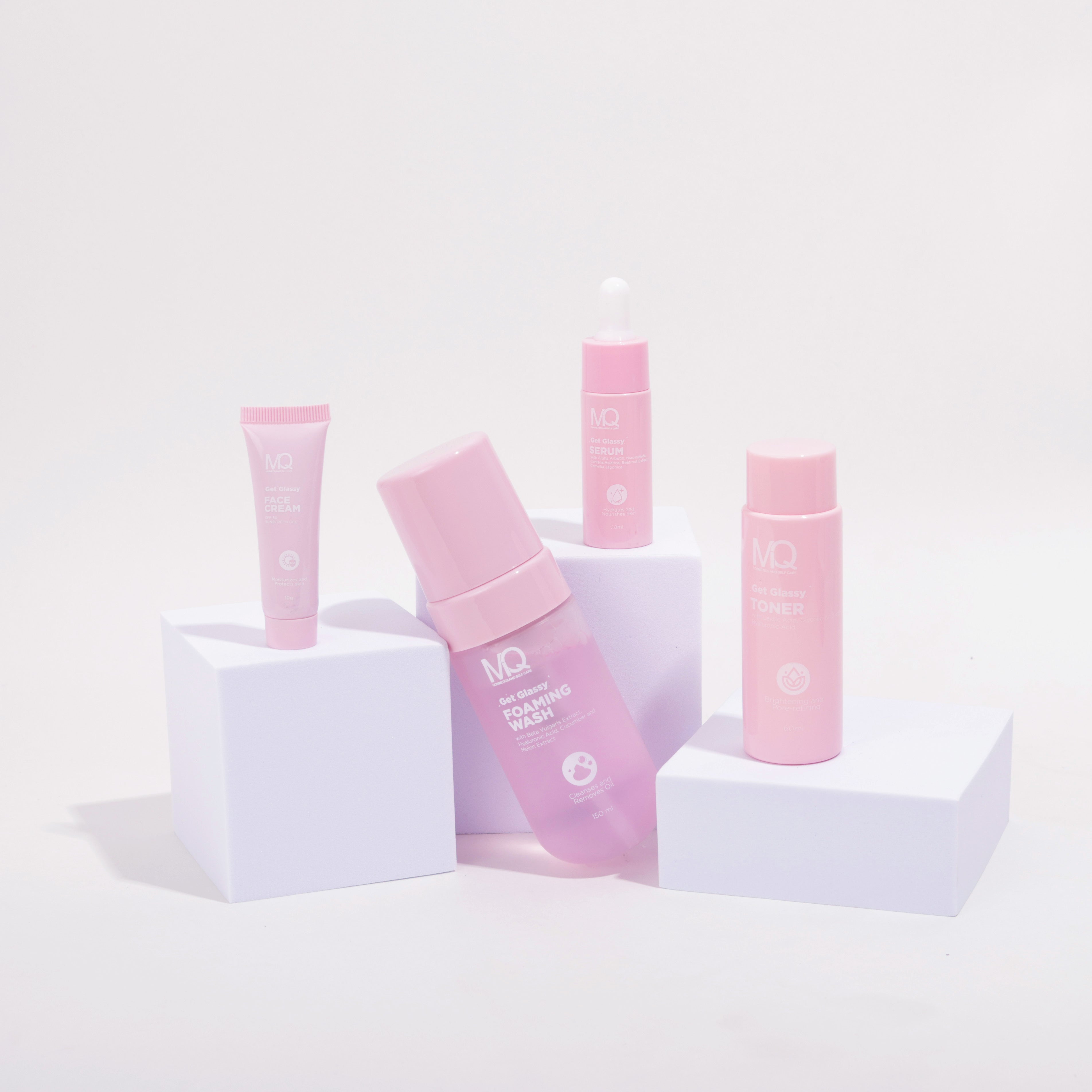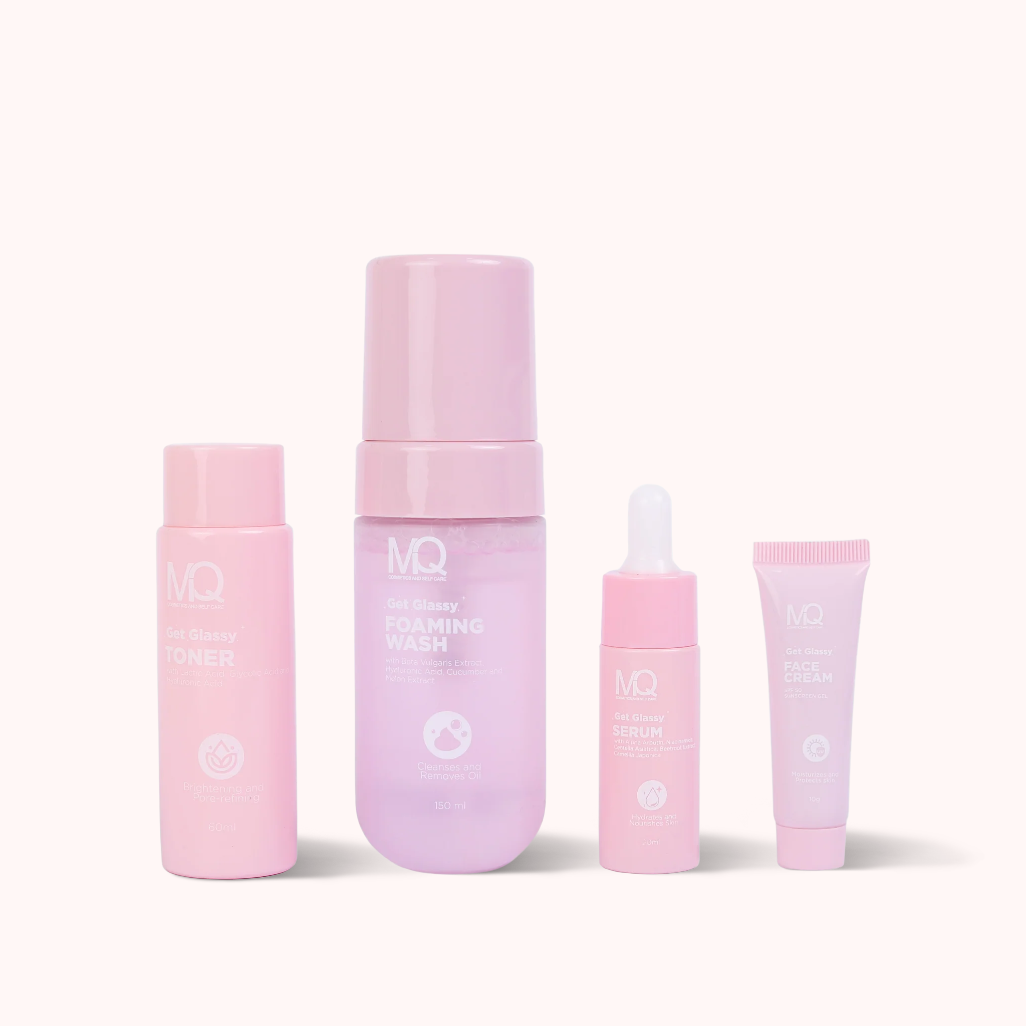 Get Glassy Skin Perfecting Set combines whitening, anti-aging and anti-acne infused with korean ingredients formulated to achieve a brighter and younger looking skin. It helps diminish imperfections by gently exfoliating the skin's top layers.